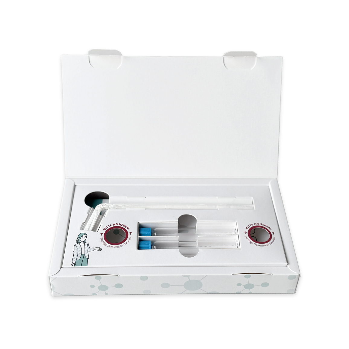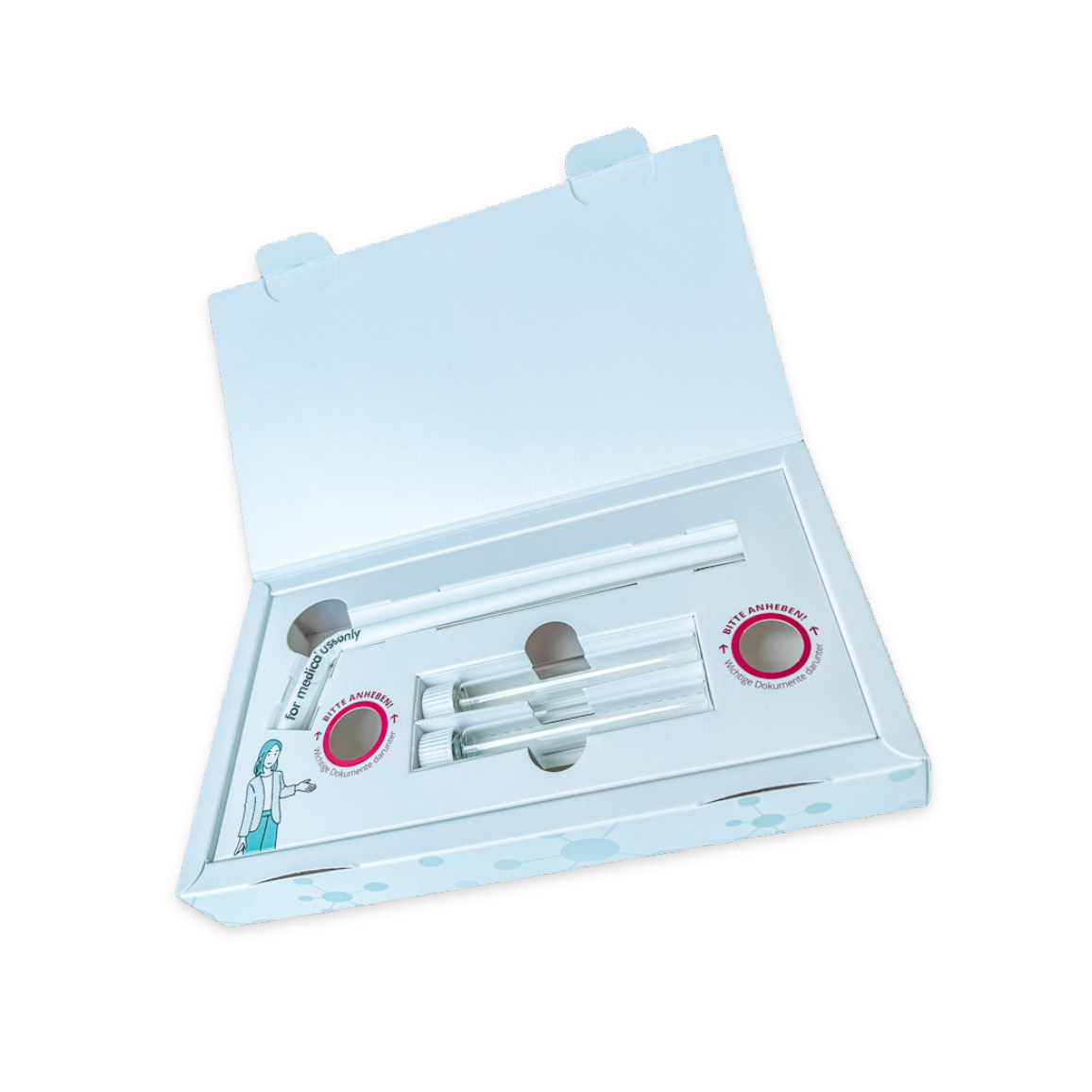- Praktische CE-markierte Testkitbox mit 2 Atemprobensammelröhrchen und einem Strohhalm für 2 Sammelzeitpunkte, vorfrankierter Rückversandumschlag, Testanleitung und weiteres Informationsmaterial